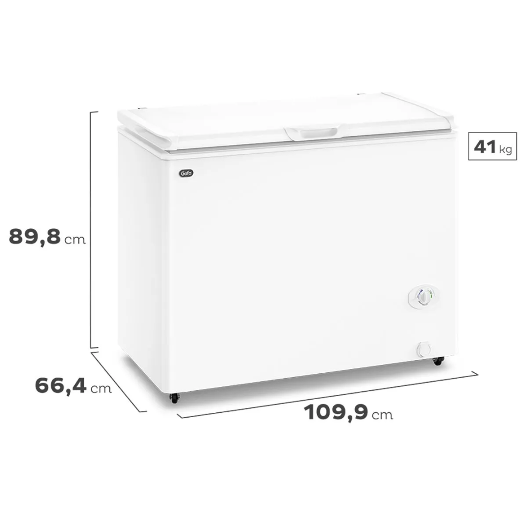 Conservá alimentos, bebidas y envases de todo tamaño, de forma práctica y organizada, con el Freezer Horizontal Gafa FGHI300B-L Blanco con 280L de capacidad.